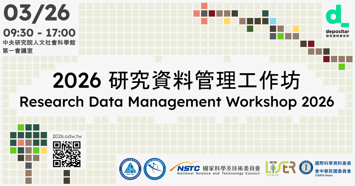 2026 年研究資料管理工作坊,於三月 26 日再次於中央研究院舉行。除了主題演講,安排有「長期社會生態研究的資料管理實務」、「跨領域研究的資料管理」、以及「資料典藏、取用、與呈現」三項議程。我們邀請了十來位經驗豐富的專家學者與實務工作者,分享其經驗與看法。希望透過這樣的安排,可呈現並討論台灣在研究資料管理上的現況與前景、實踐方式,以及所遭遇的難題。